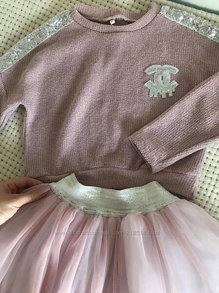 Продаём наш комплект: пышная фатиновая юбка и свитерок. Ткань с люрексовой нитью, с легким блеском, вставки из пайеток ( все пайетки на своих местах)Размер указан 122.