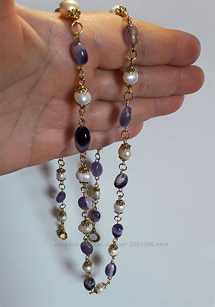 Хорошенькие длинные бусы (сотуар) из натуральных аметиста и жемчуга.Собраны очень аккуратно.
