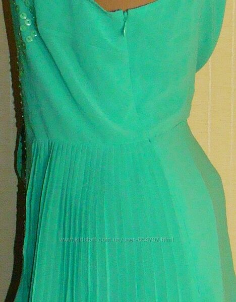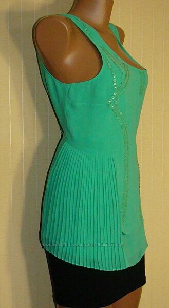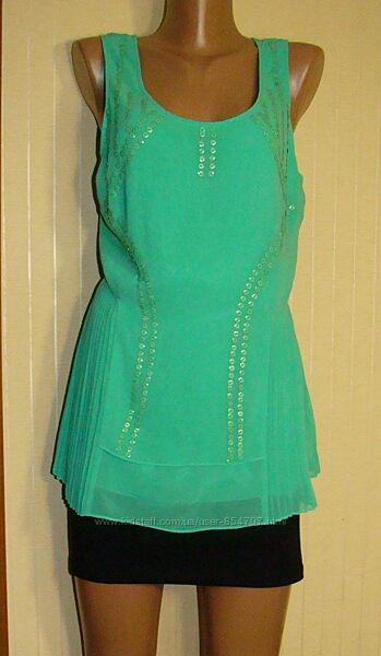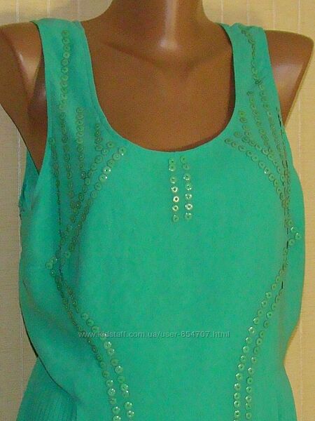 Блузка женская нарядная маечка зеленая Next (Размер 50 (L, UK16))На подкладке. Основная ткань - тонкий, как шифон, полиэстер. Декорирована пайетками. По боковому шву потайная застежка 32 см.