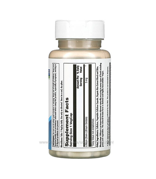 Літій - важливий мікроелемент, який природно присутній у різних продуктах харчування, включаючи зернові та овочі. Ця натуральна форма оротату хелатно пов´язана і має високу біодоступність. Оротат літію покращує когнітивні функції, підвищує імунітет, знімає головний біль, зменшує запалення, бореться з перепадами настрою.