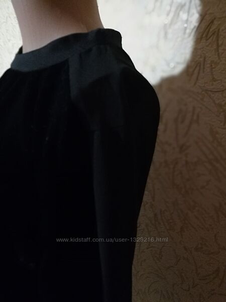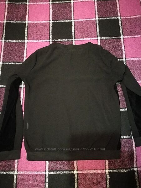 Велюровый свитшот с шифоновой спинкой, передняя половина рукава велюр, задняя часть плотный шифон, спинка вся шифон. Смотрится очень интересно вживую. Почти не тянется.