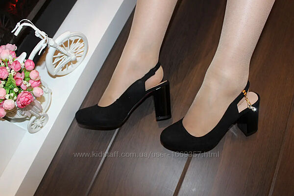Подробное описание: Босоножки женские черные замшевые на каблуке б1098