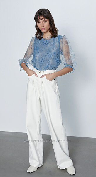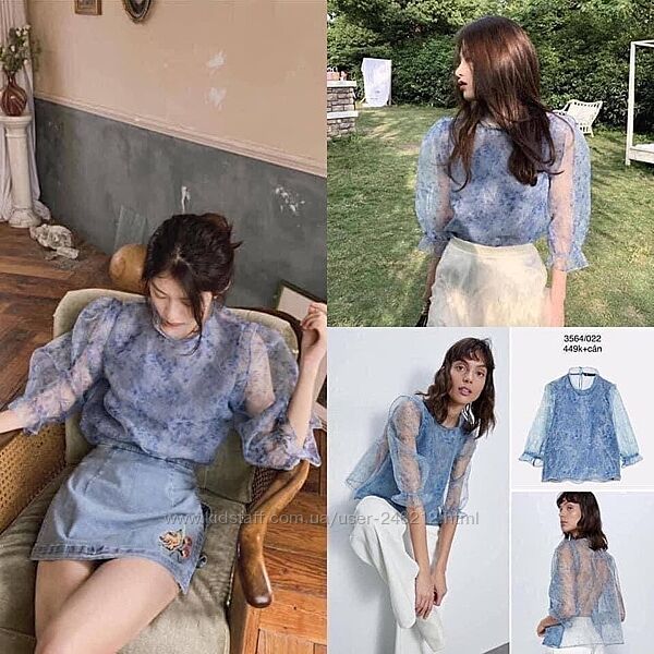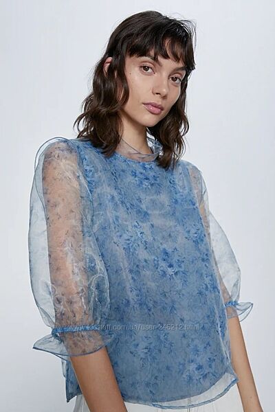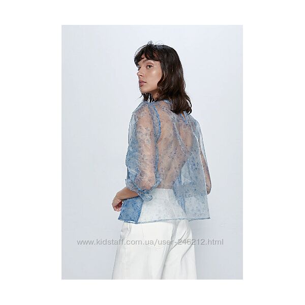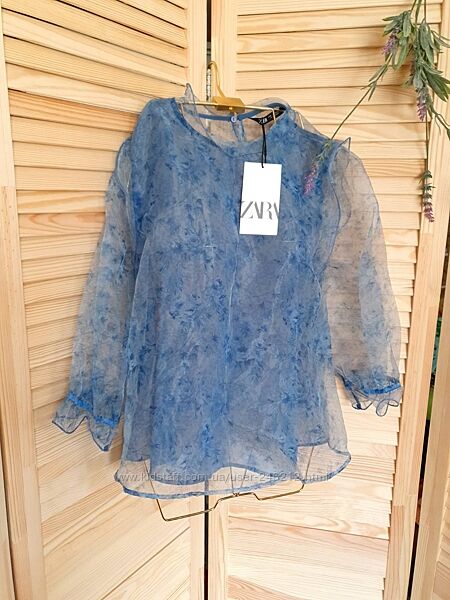 Невероятно нежная голубая блуза от Zara.По органзе идет нежный принт розы.