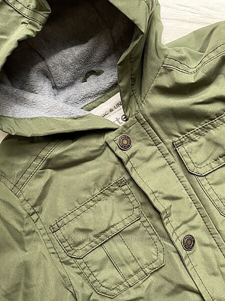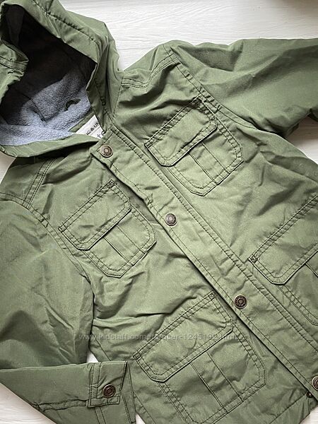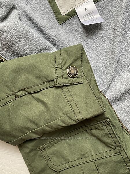 Курточка парка, цвет хаки, размер указан 6, но идет на 4-5 лет, на флисовой подкладке, очень удобная и комфортная, состояние идеальное, носили мало, смотрится стильно замеры: длина по спинке от петельки 51, рукав от подмышки 28, в плечах 29,5