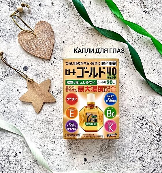 Подробное описание: Японські ніжні краплі для очей вітамінами вікові rohto gold 40 Mild капли