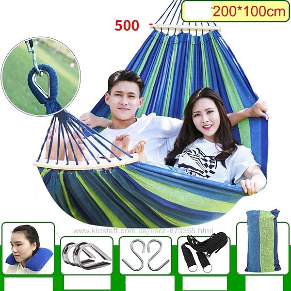 Гамак двомісний з планкою 200х80см до 150 кг з чохлом і кріпленням в комплекті -590 грн.
