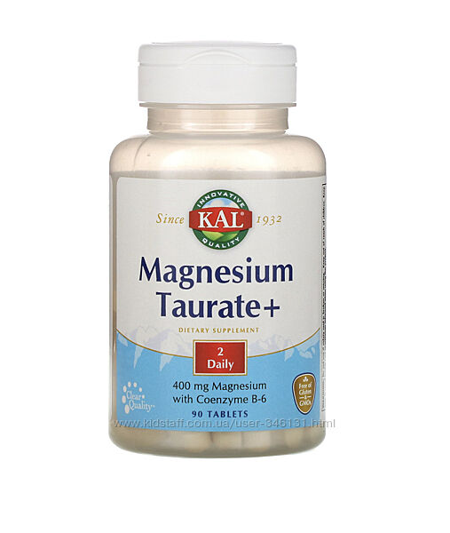 KAL, Таурат магния+, 400 мг, 90 таблетокТаурат магния KAL+ - это минерал магний в сочетании со свободной аминокислотой таурином. Магний предназначен для обеспечения питательной поддержки, необходимой для нормального здорового функционирования нервной системы и мышц, а также для регуляции здорового потока ионов через клеточные мембраны, чтобы обеспечить стабильность мембран и защитить от окислительного стресса сердце, кровеносные сосуды и ткани.