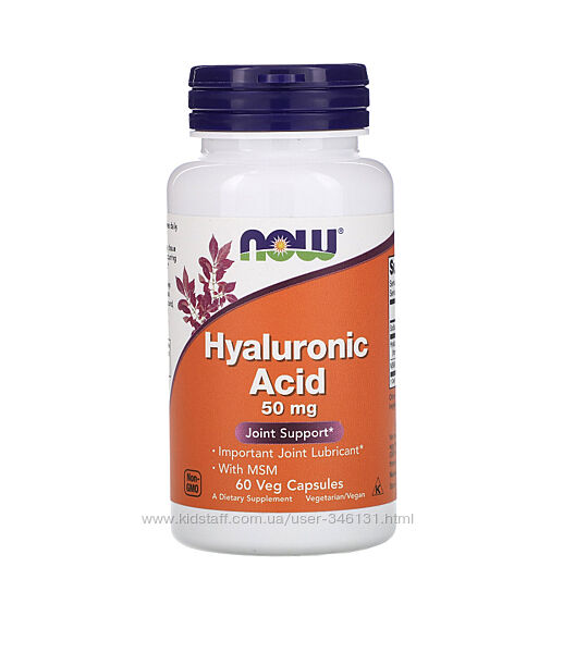 Now Foods, Гиалуроновая кислота с МСМ , 50 мг, 60 растительных капсулОписание: