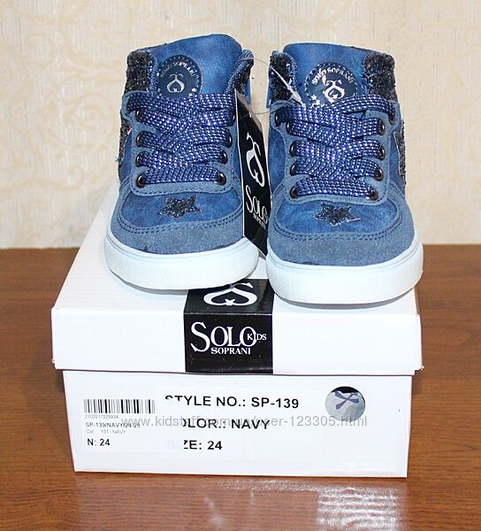 Ботинки для девочки Solo Soprani, цвет - синий, 24 размер, стелька - 15 см.ТОП предложения