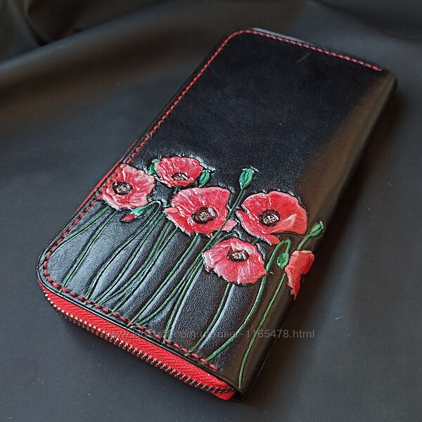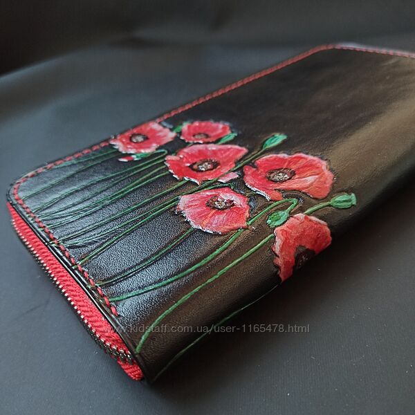Кожаный женский кошелек с ВАШИМ рисунком. Расписан и прошит вручную.