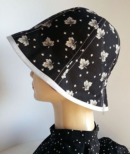 * Шляпа выполнена из ситца принтованного: "Белые кленовые листья на черном фоне".