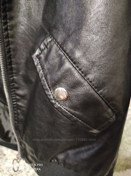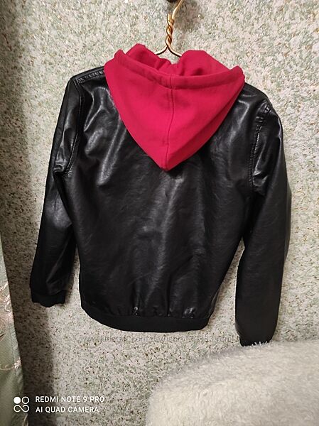 Крутяцкая куртка на мальчика 8-9 лет 134-145 (по бирке 11-12 лет, рост 152, но реально маломерит) из экокожи, очень мягенькая не отличить от натуральной! Подойдет на теплую весну или осень.Состояние курточки великолепное, носили очень акуратно и не долго, следов носки не видно совсем, дефектов нет. С джинсами и кроссовками просто идеально смотрится и круто. Капюшон трикотажный, двойной, на пуговичках, при надобности отстегивается. Горловинка, манжеты и низ куртки -трикотажная резинка. Застегивается на молнию, есть два кармана.