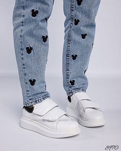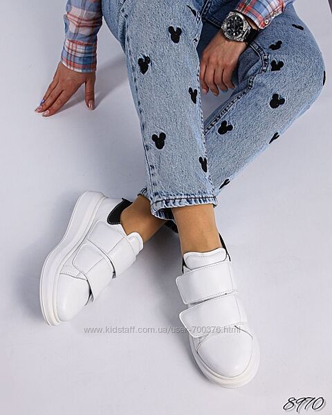 Кеды на объёмных липучках, натуральная кожа, белые. Кожаная внутренняя часть. Высота подошвы 4/3 см. Размер в размер. Размерный ряд: 36-41. Производитель Украина.