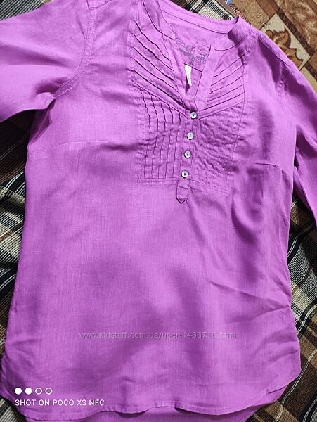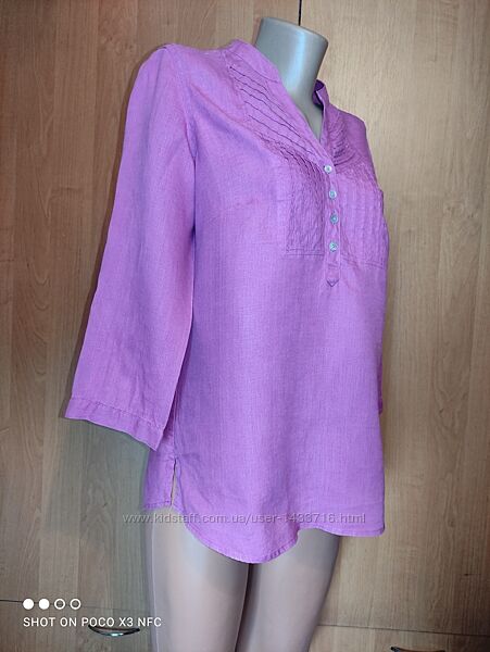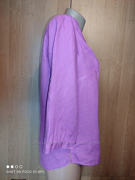 Роскошная блузка бренда Marks&Spencer насыщенного сиреневого цвета из 100% льна. Пуговицы из натуральных перламутровых ракушек. Состояние бомбезное! Фото делались со вспышкой, наиболее реальный цвет на последнем фото.Размер указан 10, ориентировочно наш 46-48 размер. Внимательно смотрите замеры: