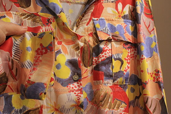 Яркая блузка рубашка оверсайз Zara цветочный принт шикарного качества 100% вискоза, на этикетке указан размер L. Отличный веченне-летний вариант. Новая, сток, без этикетки.Длина 57 см, ширина по спинке 54 см, ширина плеч 40 см, длина рукава от плеча 62 см. Прошу обратить внимание на ширину рукава сверху 17 см ( на широкую ручку не подойдет).
