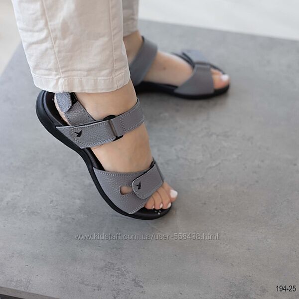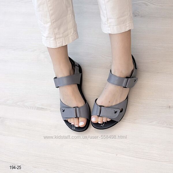 Подробное описание: Босоніжки на липучках з натуральної шкіри сірого кольору