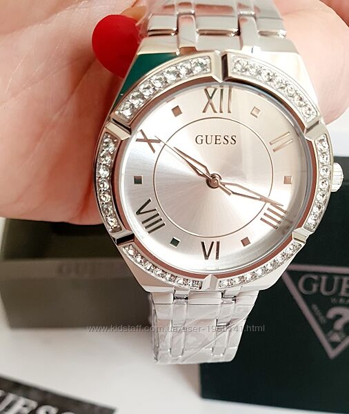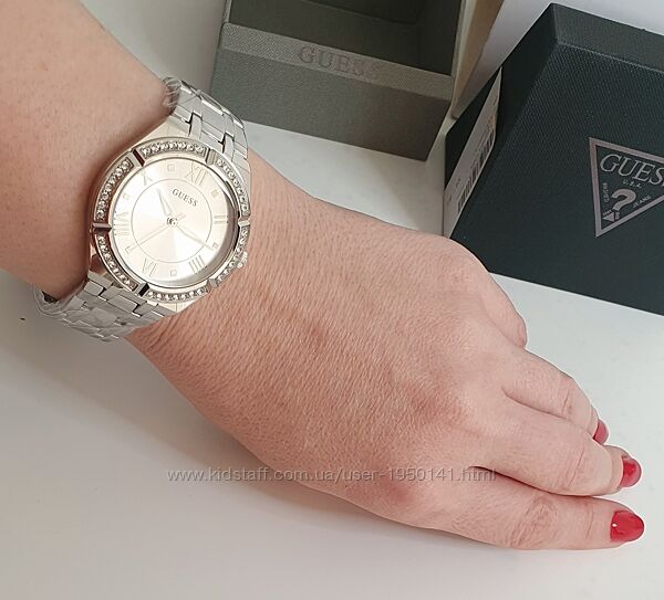 Модель GW0033L1Женские кварцевые часы GUESS с браслетом из полированной серебристой стали,длина браслета 184мм,застёжка раскладывающаяся с кнопкой безопасности. Диаметр корпуса 36мм, круглый полированный серебристый, стекло минеральное. Циферблат : маркеры с серебряными римскими цифрами. Толщина корпуса 10мм. Водонепронецаемость 100 футов.