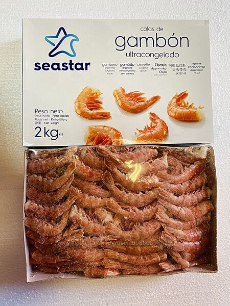 Мороженая креветка аргентинская в панцырь бе головы . Без глазури, сухой заморозки.