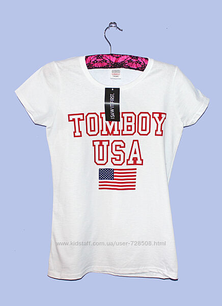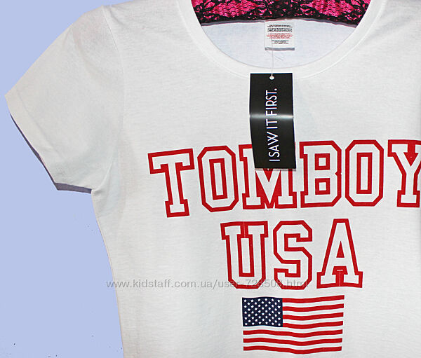 Подробное описание: Isawitfirst. Англия. Футболка с надписью и принтом Американского флага.