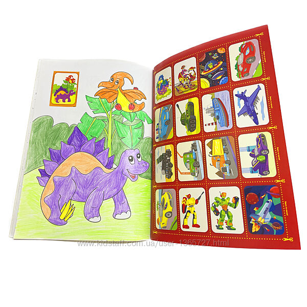 Збірка розмальовок 64 сторінки з кольоровими наклейками розрахована для старшого дошкільного і молодшого шкільного віку. Розмальовку можна використати, як розвиваючу для дітей, де вони можуть побачити і зрозуміти різні види тварин, види транспорту, ознайомитись з цікавими казковими персонажами. Тому що школярі більше люблять розмальовки, де є улюблені герої із фільмів, супергерої, динозаври та принцеси.Окрім того, кожна велика збірка розмальовок має чудову колекцію кольорових наліпок з такими ж ілюстраціями, як сторінки для розмальовування. Найкраще обрати для цих розмальовок якісні кольорові олівці, але також можна малювати фарбами, фломастерами та ін.