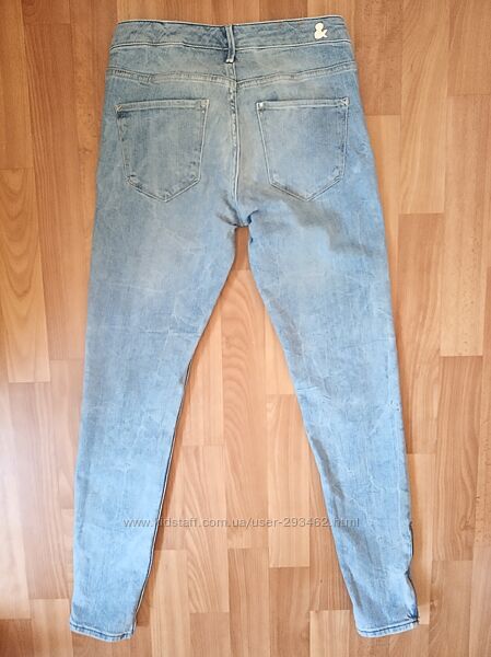 Фото 7-8 - джинсы скинни с молниями внизу H&M на р.164 б/у в очень хорошем состоянии. Только есть нюанс - поломаны бегунки на молнии на разрезах внизу штанин (могу прислать фото ), но в использовании это никак не мешает. При желании расстегнуть молнию, это легко сделать. Замеры: длина 91 см, шаговый шов 71 см, ПОТ 35 см, ПОБ 43 см. Цена 100 грн.