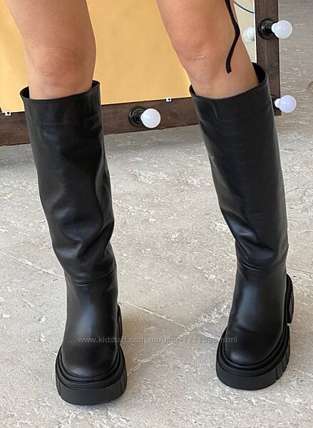 Подробное описание: Женские натуральные кожаные сапоги трубы на массивной тракторной подошве
