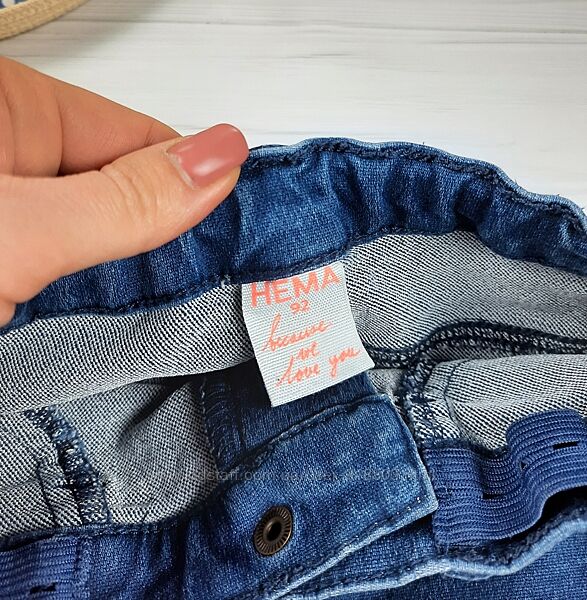 Джинсы от Hema 2 года, 92 см. Ткань 70% котон, 28 полиэстер и 2% эластан, в поясе есть утяжка, идеальное состояние. Бангладеш.Замеры: