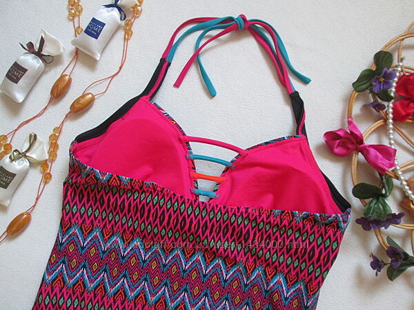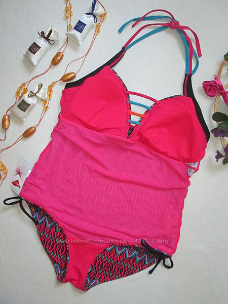 Шикарный сдельный слитный купальник в орнамент с переплётами TU. Новый. Размер 16. Есть поролоновые вкладки. Спереди сетка утяжка. Затяжки по боках. Ориентируйтесь на замеры. Длина от верха лифа 58 см. Длина по боковому шву 31 см. Полуобхват груди 42 см + тянется до 59 см . Полуобхват талии 39 см + тянется до 54 см . Полуобхват бедер 43 см + тянется до 61 см . Чашка: высота 15,5 см, ширина 18 см, глубина вертикально 16 см, глубина горизонтально 22 см. Замеры сделаны с внутренней стороны поролон вместе с тканью. Тянется. ОБМЕНА и ВОЗВРАТА НЕТ! ФОТО на ТЕЛЕ НЕ ДЕЛАЮ! Состав: 80 % полиамид, 20 % эластан. Доставка: Оплата на карту Приватбанка. Наложенного платежа нет! Посылку отправлю Новой почтой, Укрпочтой или Justin