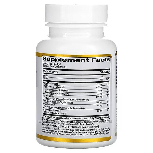 1) CurcuminUP Комплекс куркумін і омега 3, куркума, США, 30 капсулCalifornia Gold Nutrition Curcumin UP Комплекс куркумін та омега 3, 30 капсул