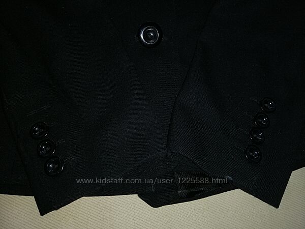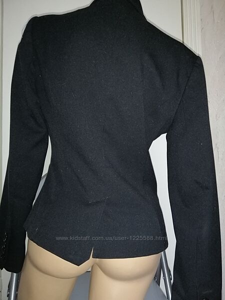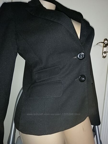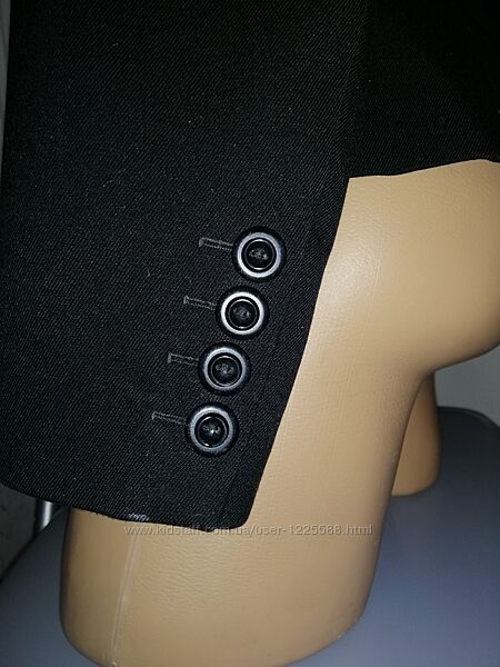 Піджак чорного кольору в хорошому стані без дефектів, підкладка ціла. Є плечики, модель приталена. Бірка зі складом зрізана, на дотик тканина м´яка, можливо бавовна з поліестром Заміри: Напівобхват грудей - 45 Напівобхват талії - 39 Напівобхват стегон - 46 Рукав від плеча - 60 (44 по внутрішній стороні) Довжина по спинці - 55