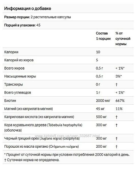 С корой муравьиного дерева, маслом орегано, черным орехом и каприловой кислотой