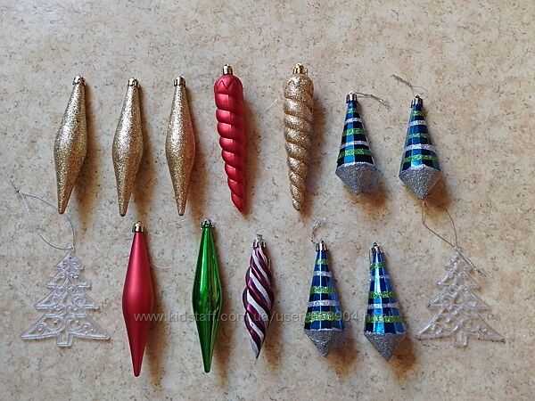 Подробное описание: Новогодние ёлочные игрушки, украшения, шары, сосульки. Прикраси, іграшки.
