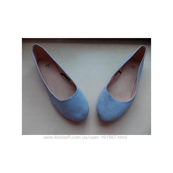 Фирменные Немецкие Балетки H&M р-р39(24.5-25см)-300грн. б\у в хорошем состоянии.Верх искуственная замша. куплены в Германии. цвет небесно-голубой. Удобные и легкие.