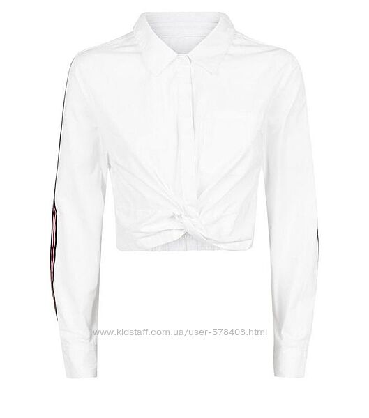 Рубашка с конрастной строчкой, кроп-топДлина 50 см; ПОГ 58 см; ПОТ 48 см; длина рукава от ворота 77 см