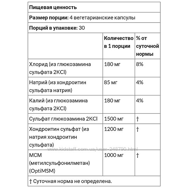 - Сульфат глюкозаміну 2KCl 1500 мг;