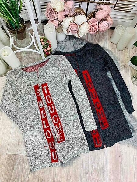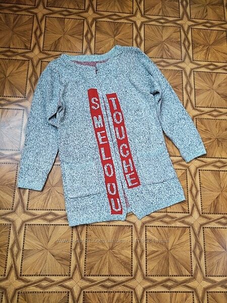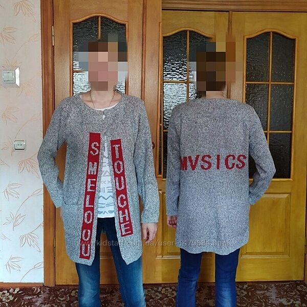 В нашем магазине грандиозная распродажа!!Смотрите др. лоты! Цены снижены!Шикарные модные серые кардиганы, с карманами по бокам, плотная вязка. В наличии темно- серый , а светло-серый - продан. Размер не указан,смотрите замеры ! Качество отличное. Идет на наш 46 - не полный 48р. Есть схожий кардиган идет на 44р. Цена 240 грн.ПОГ - 48 см - 50 см