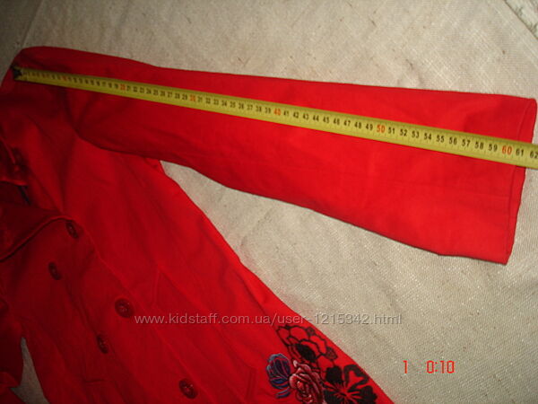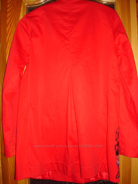 Эффектный фирменный плащ в стиле испанского бренда Desigual (неодинаковый)-яркий,не похожий на остальные. Насыщенный красный цвет,красивая вышивка, сзади встречная складка, два кармашка, брендовый