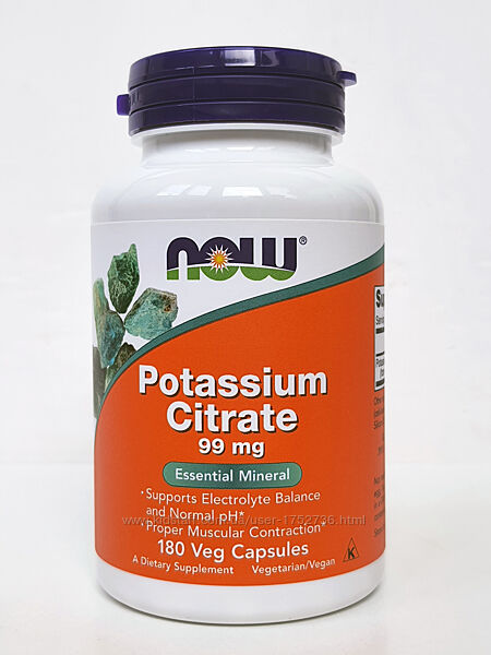 Подробное описание: Калій цитрат Now Foods, 99 мг, 100 капсул / 340 г