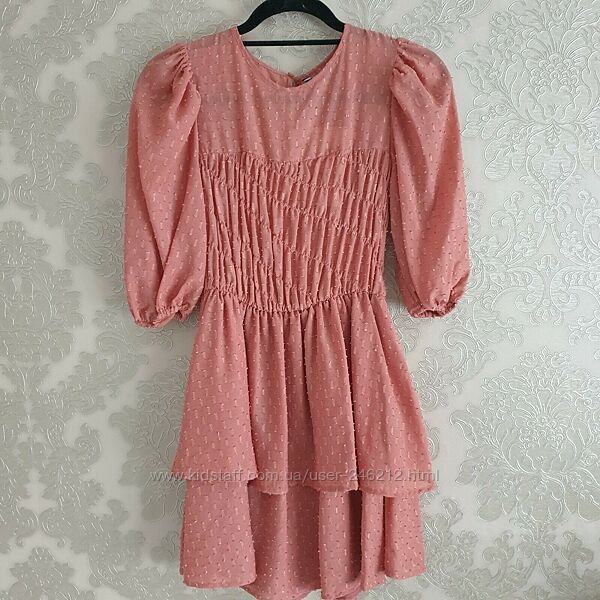 Милое пышное платье Zara .Ткань легкая типа шифона , с фактурой горошка , очень красиво струится .