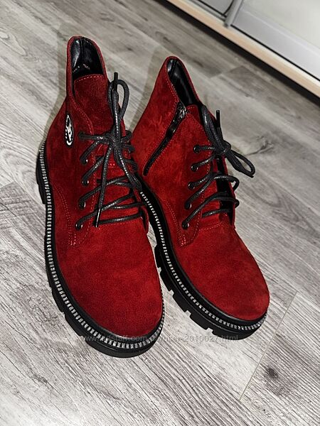 Червоні шкіряні жіночі чоботи, нові. Дуже комфортні та стильні для будь-якого випадку.