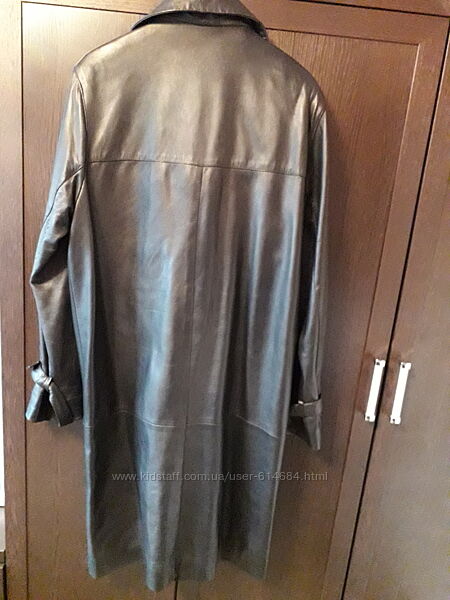 Кожаный черный плащ в идеальном состоянии р.48.Одет пару раз.Под мышками 57см, длина рукава 65см,длина плаща 110см.Плечи назади47см.Кожа ягнёнка,очень мягкая.Без капюшона.Га рост 176см.