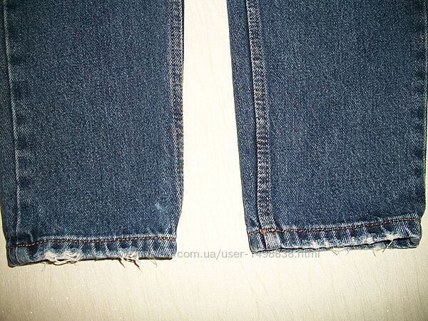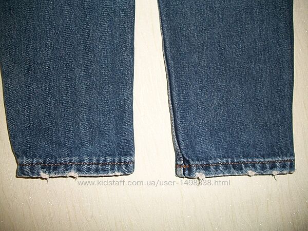 Джинсы имеют изначальные потертости по краю карманов и низу.