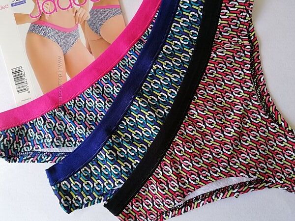 Трусики выполнены из хлопковой ткани с добавлением эластана. Срезы по ножкам обработаны подгибом. Трусики представлены в трех цветах с яркой контрастной резинкой. Упакованы в отдельные оригинальные коробочки.Состав: Хлопок 93%, Эластан 7%. Ластовица: Хлопок 100%.