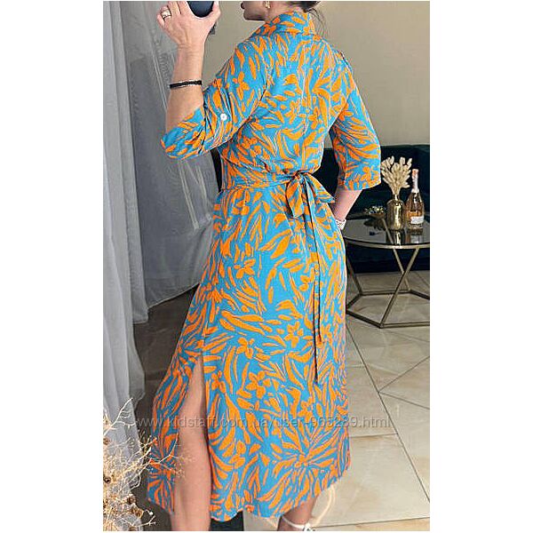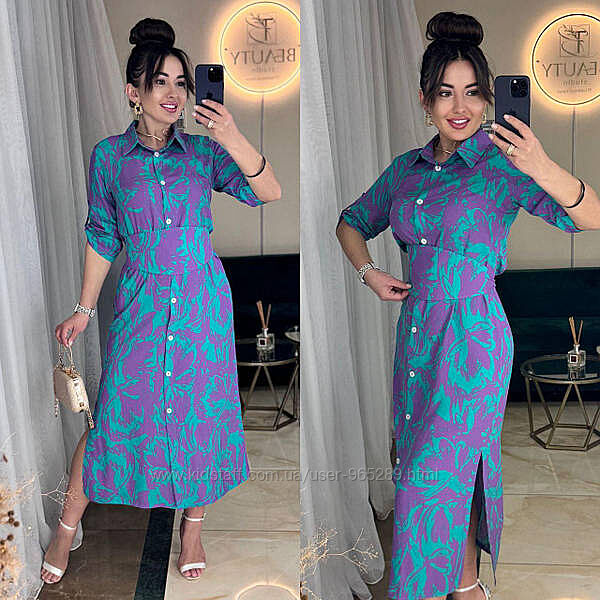 Плаття-сорочка з розрізами та широким поясом, що дає змогу змінювати образиРукав 3/4, регулюється