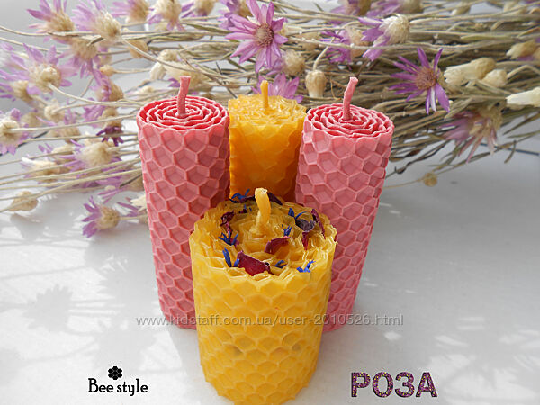 Набір свічок із натуральної бджолиної вощини з додаванням пелюстків троянд 🌹