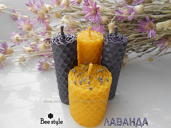 Ароматний набір свічок із натуральної бджолиної вощини з додаванням сухоцвітів лаванди🌿