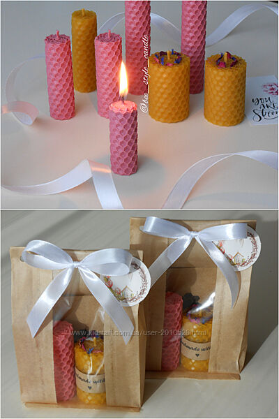 Свічечка може бути чудовим подарунком рідним та близьким людям, а також колегам - усім, кому хочеться зробити приємно:)Вощина, з якої зроблені свічки, сертифікована та виготовлена лише зі 100% воску, без домішок.