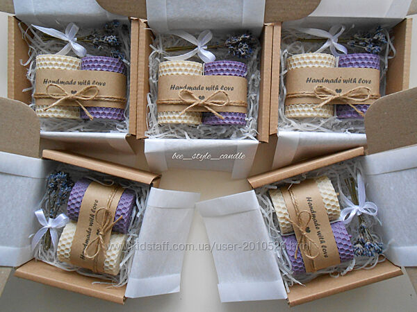 Подробное описание: Набір свічок з натуральної вощини, свічки, набір, лавандова свічка, біла св