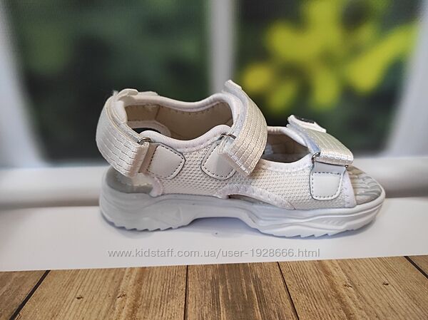 Лёгкие босоножки для девочки от Том.мВерх - экокожа и текстиль, внутри текстиль, стелька - кожа с супинатором, фиксация на липучки, мигающая кнопка.