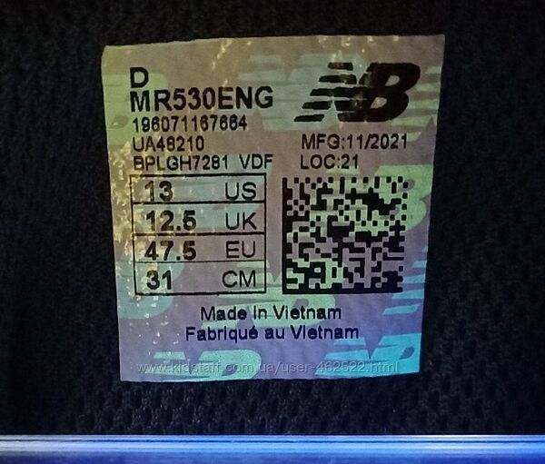 Оригінальність кросівок підтверджується голографічним знаком із фірмовим логотипом "NB", який видно лише в ультрафіолетовому світінні, дивіться фото 6